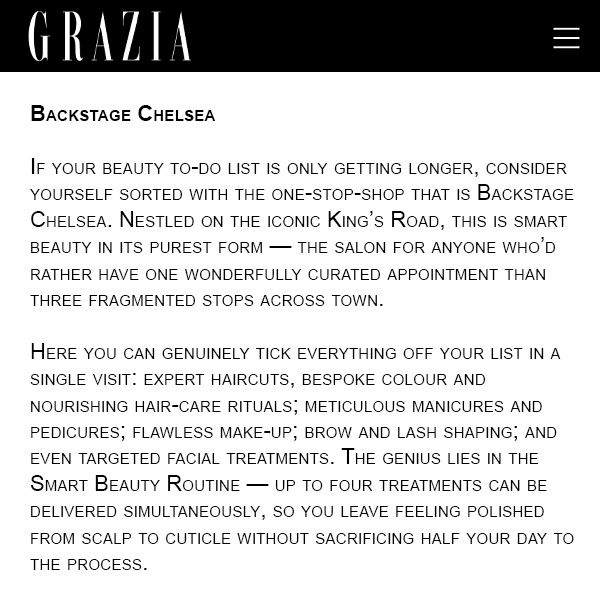 Book your appointment and discover why Backstage Chelsea is officially Grazia-approved.